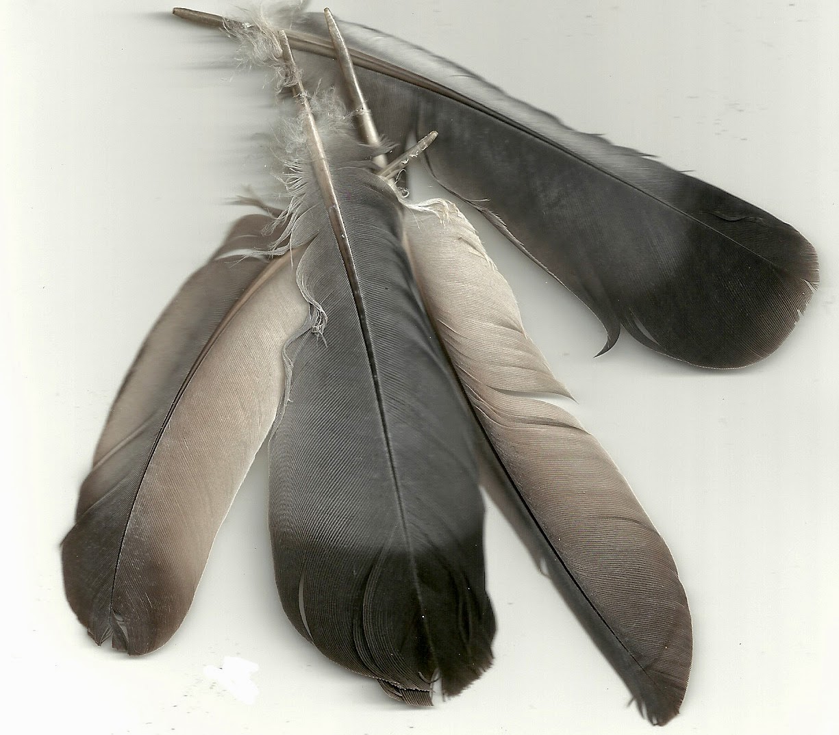 Feathers can be purchased from craft shops as well as on-line.  Or you can gather them from under your bird feeders.