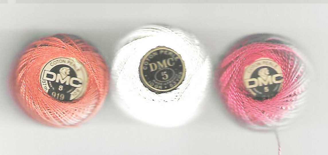 Pearl cotton. * Twisted, shiny thread, available in two thicknesses. Used for stranded cotton where you require a heavier effect.