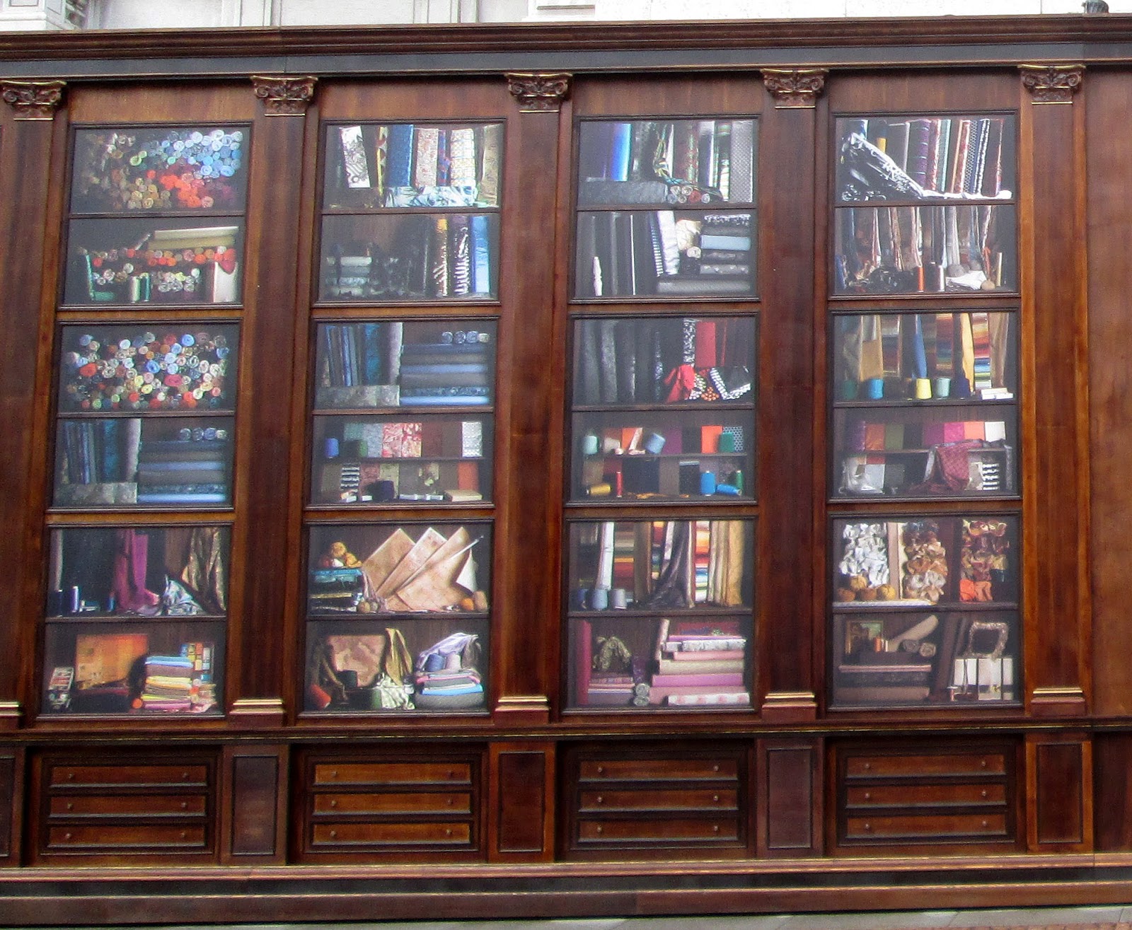 could see stacks of fabrics, masses of buttons, zippers and all manner of
