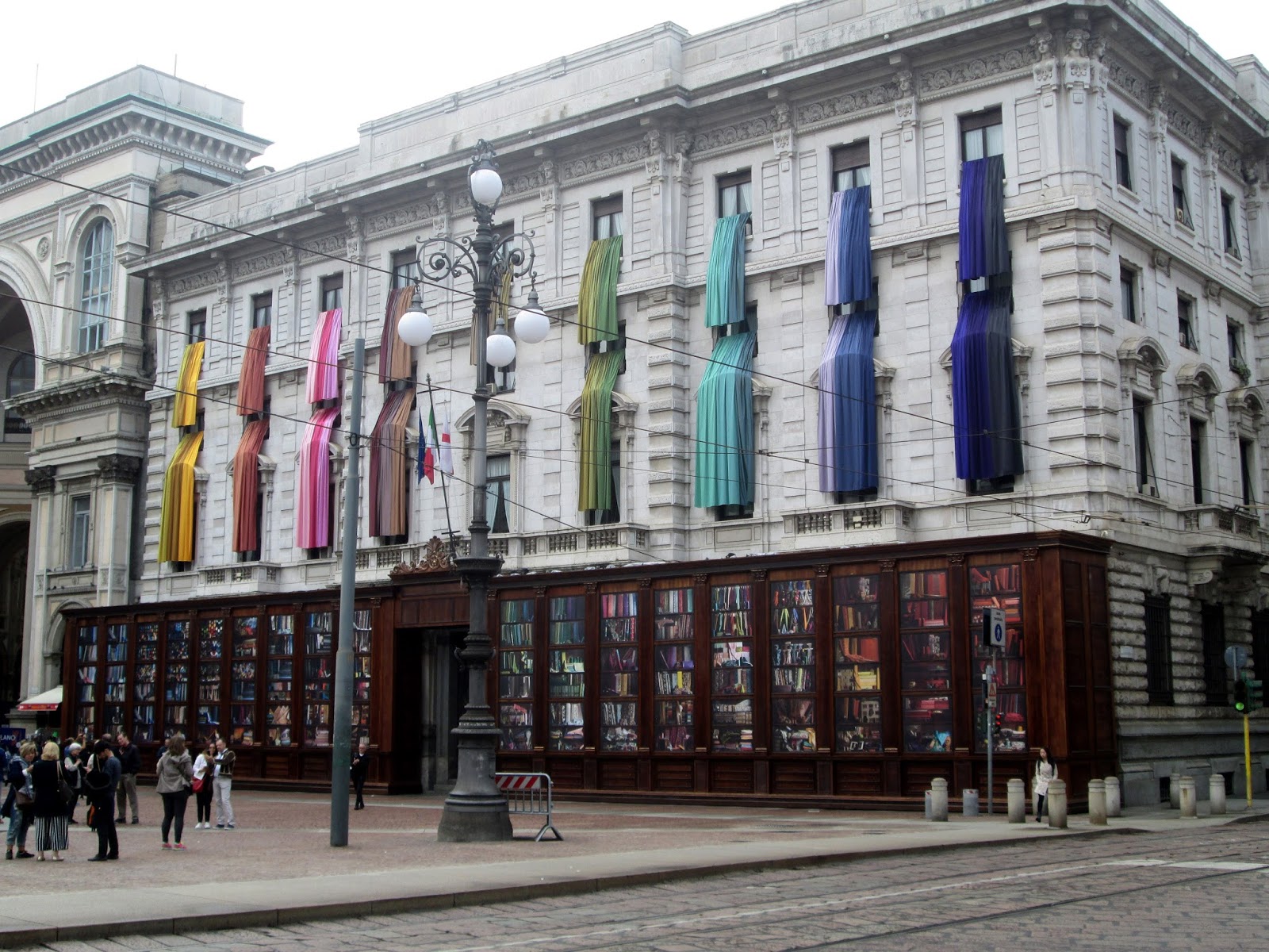 Europe, America and Africa and the glass and metal ceiling was the first in Italy to be structural rather than merely decorative. This display, in front of the Prada flagship